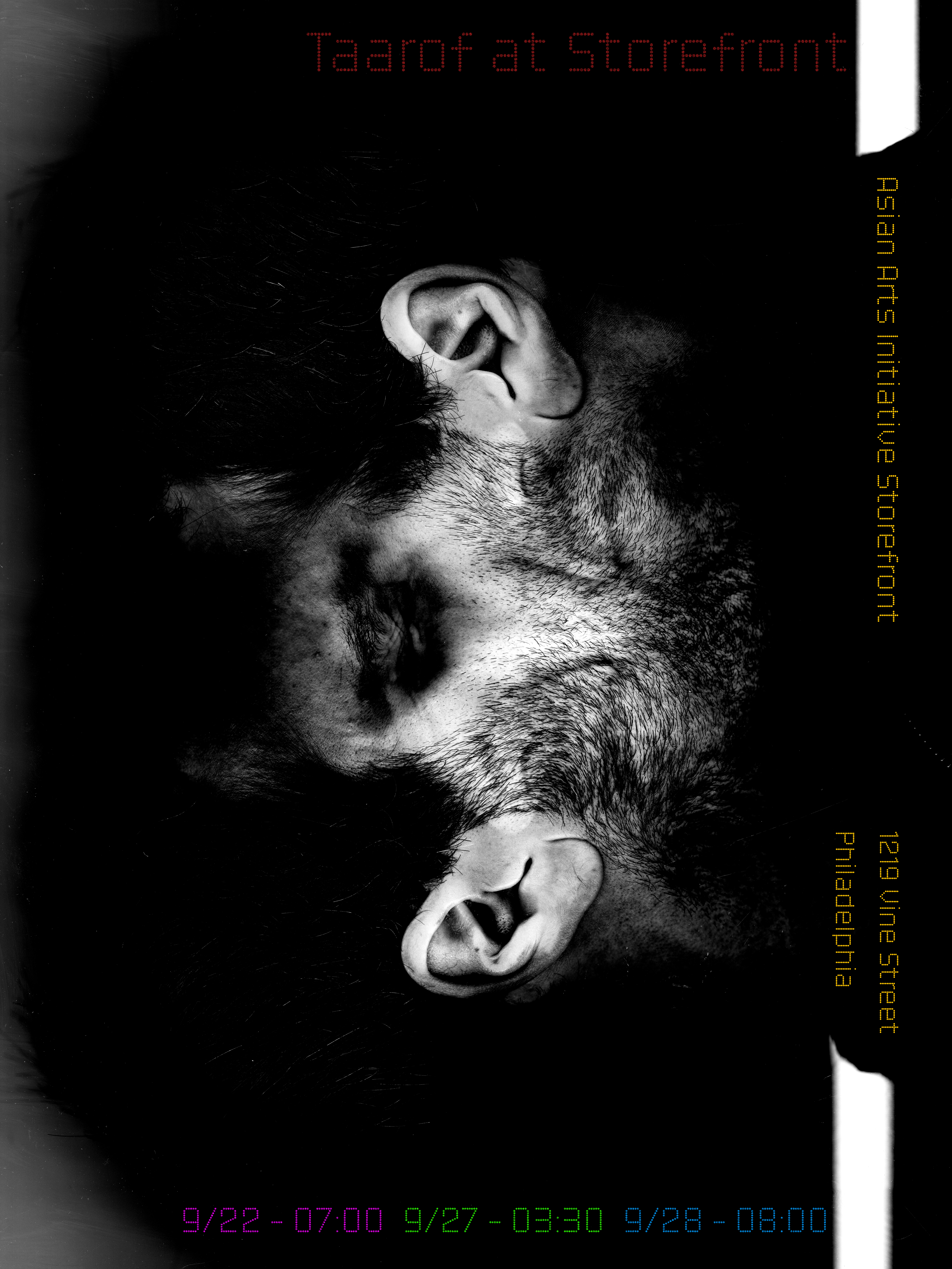 Asian Arts Initiative StorefrontNote: ...and yet another report on this band that called themselves, Taarof. At this point, I collect a check at a PO Box in King of Prussia in exchange for writing notes and whatnot about this obscure band. New update is that they have decided to put out a recording in some format, but I haven't seen anything. I was in Québec when they were trying to record materials in a basement in New Haven, CT. I asked my friend, the Lady in Red, to follow them. Again, I asked her kindly to change to a more clandestine outfit, but she said no. Anyhow, P seems challenged by the adult life in this utopic fantasyland. He has been taking refuge in durational sex and drugs. Now that we are discussing him, I have been asked to mention for the sake of marketing that he is from Iran, which is the name of the detention center outside of Fort Bliss, Texas - and he ultimately represents that culture, however rigorously he tried to escape that space, but hey, we want him to. Moving on, M is quite elusive. The Lady in Red had a really hard time probing his life... he was seen in Philadelphia eating a sandwich at Paesano's. One thing that she revealed to me about him is that he was actually born in 1893 in Düsseldorf, in a classroom setting offering clinics via early telemed.